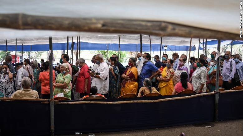 Người Ấn Độ xếp hàng chờ đến lượt tiêm vaccine Covid-19 ở Mumbai hôm 29.4.