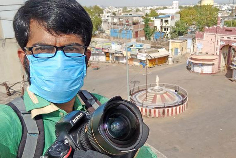 Một nhà báo đưa tin về Covid-19 ở Beawar, Ấn Độ. Ảnh: DW