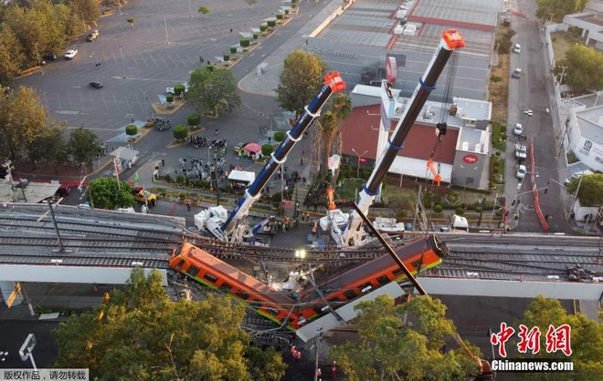 Đoạn cầu bị sập nhìn từ trên cao. Thị trưởng thành phố Mexico Claudia Hinbaum đã đến hiện trường sau khi vụ việc xảy ra và nói rằng lực lượng cứu hộ vẫn đang tìm kiếm những người sống sót. Bà Claudia cam kết sẽ tiến hành một cuộc điều tra đầy đủ về vấn đề này sau đó. Ảnh: China News