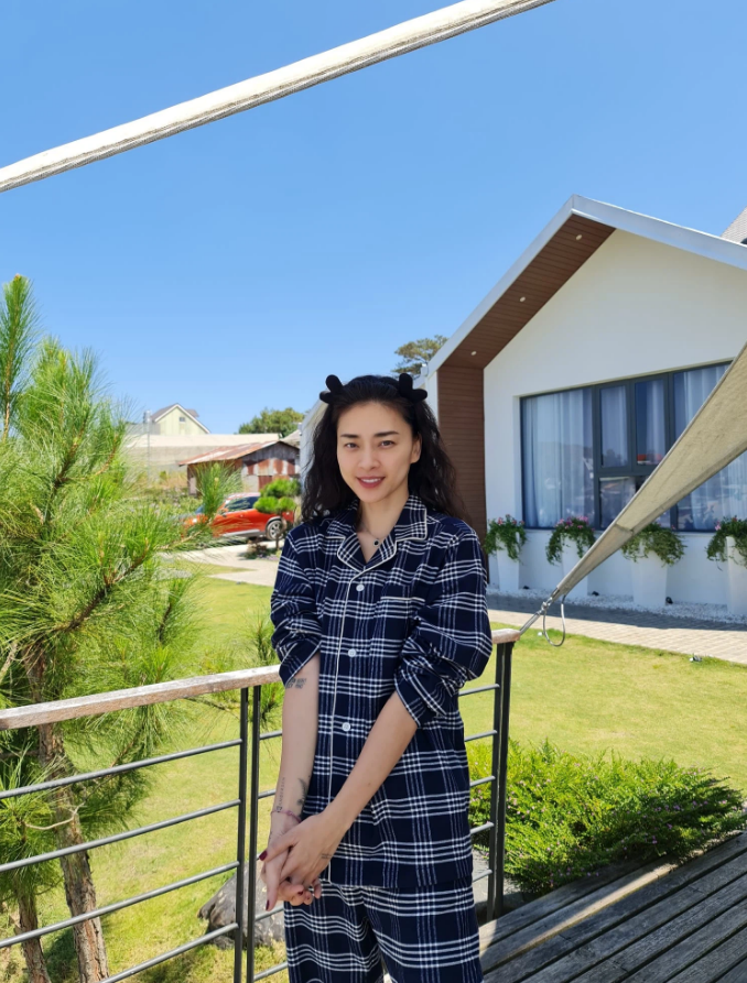 Ngô Thanh Vân trông vẫn rất trẻ trung trong bộ đồ ngủ đơn giản - Ảnh: FBNV