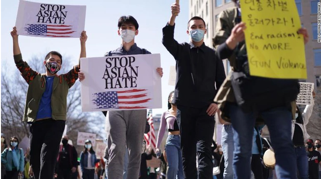 Nhiều người Mỹ gốc Á biểu tình chống tội phạm thù hận ở Mỹ. Ảnh: CNN.