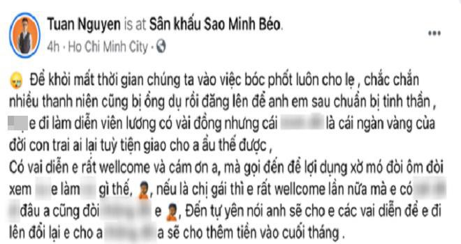 Tuấn Nguyễn công khai tố Minh Béo gạ đổi tình lấy vai diễn, động chạm vùng nhạy cảm.