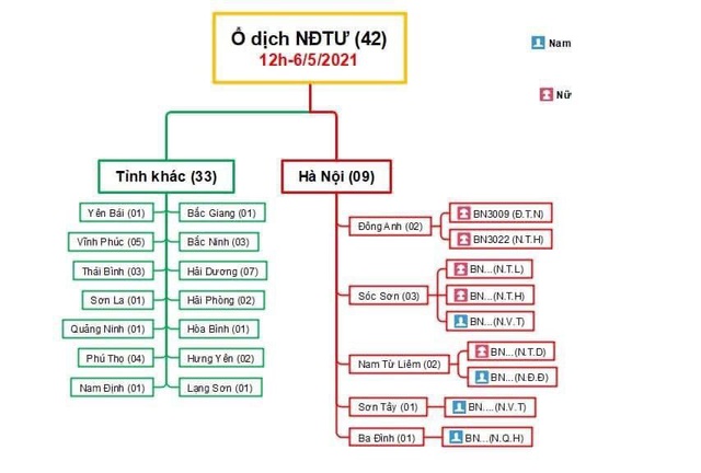 Ngoài ra, tại các địa phương trên cả nước cũng đã liên tục báo cáo các ca dương tính SARS-CoV-2 là những bệnh nhân có liên quan đến cơ sở Đông Anh của bệnh viện này. Trong đó, Bắc Ninh là địa phương phát hiện ca bệnh nhiều nhất, với 9 trường hợp.