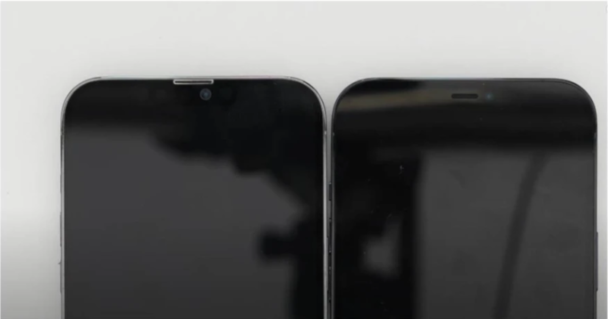 Tuy nhiên, có thể nhận thấy hai khác biệt lớn là phần "tai thỏ" trông gọn gàng hơn với kích thước chỉ còn 8,31 mm. Cảm biến, camera TrueDepth cũng được đặt gần nhau trong khi loa thoại được dời hẳn lên mép trên, tương tự nhiều smartphone mới ra mắt của Samsung. Thiết kế này từng được đồn đoán trên iPhone 12 nhưng không được Apple hiện thực hóa.