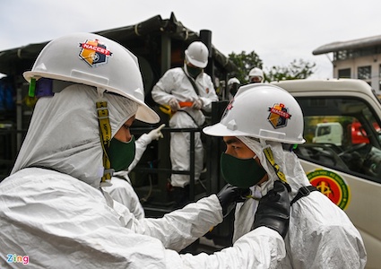 Lực lượng này từng phun khử khuẩn nhiều khu vực có ca mắc Covid-19 tại Hà Nội như phố Trúc Bạch, Bệnh viện Bạch Mai.