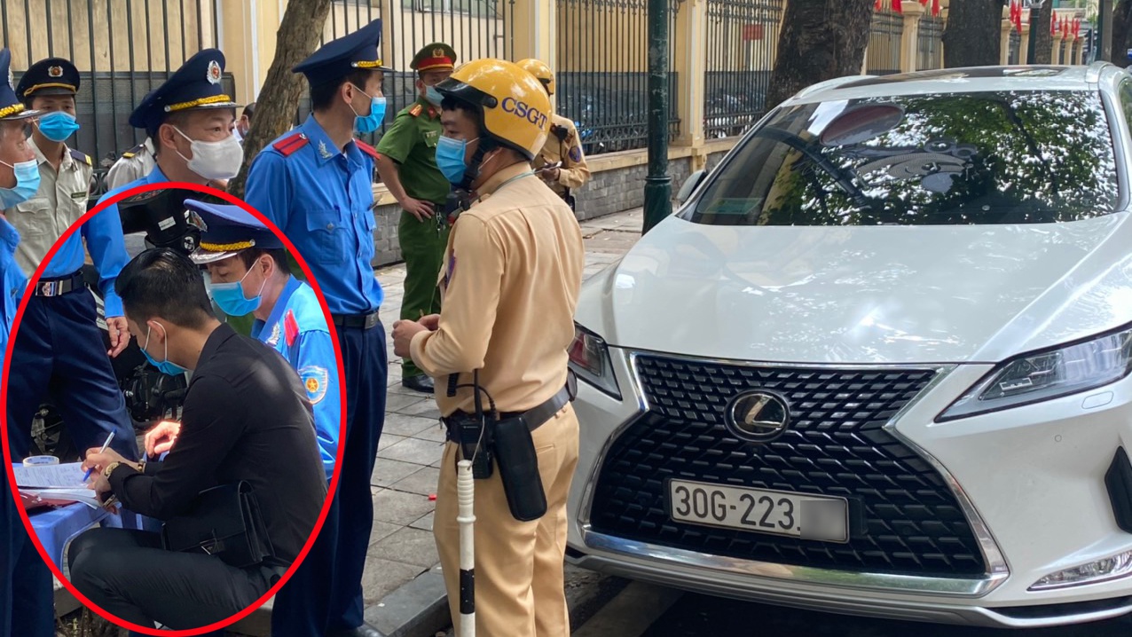 Theo đó, khoảng hơn 10 giờ ngày 6.5, Tổ công tác liên ngành của Công an Q.Hoàn Kiếm làm nhiệm vụ tuần tra, đảm bảo an toàn giao thông đô thị trên địa bàn thì phát hiện chiếc ô tô Lexus màu trắng, mang biển số 30G - 223.97 dừng đỗ sai quy định trên phố Tràng Thi, trước cổng Bệnh viện C, đã tiến hành làm việc, nhắc nhở tài xế.