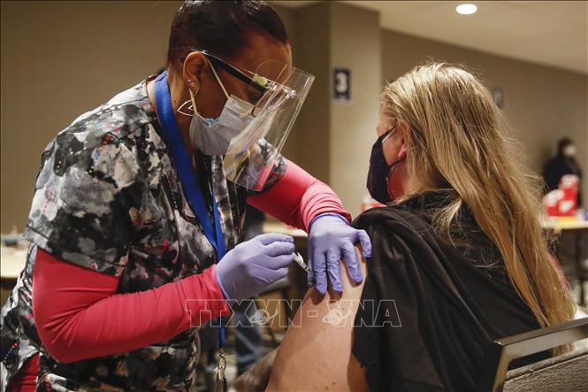Tiêm vaccine ngừa COVID-19 cho người dân tại Chicago, bang Illinois, Mỹ. Ảnh: AFP/TTXVN