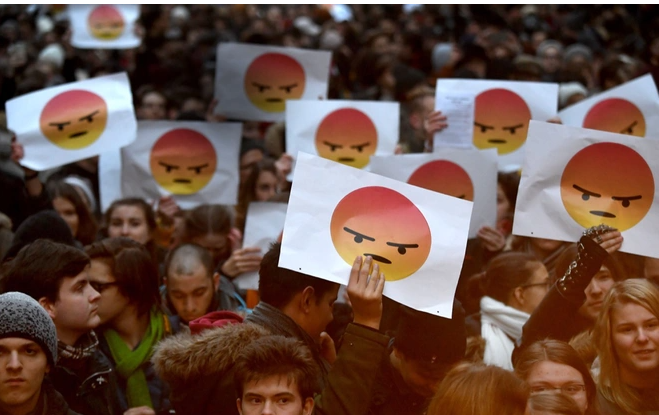 Một cuộc biểu tình phản đối Facebook. Ảnh: AFP.