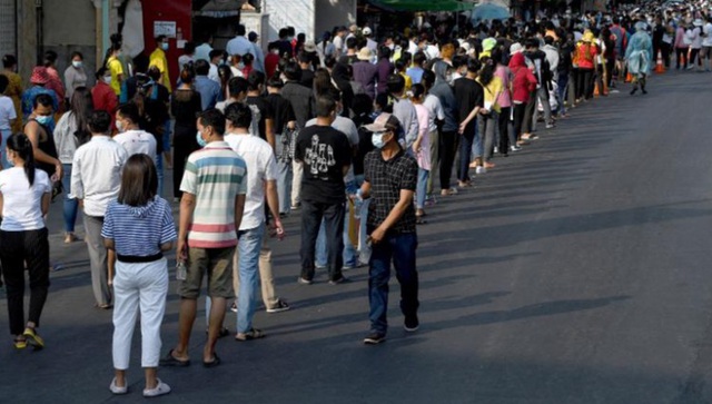 Người dân xếp hàng tiêm vắc xin Covid-19 ở thủ đô Phnom Penh, Campuchia (Ảnh: Getty).