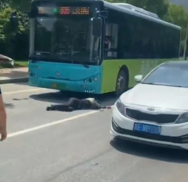 May mắn là tài xế lái xe đã phản ứng phanh kịp thời. Người phụ nữ ngã sõng soài trên mặt đất chỉ cách đầu xe buýt nửa mét. Nếu tài xế không nhanh trí, chỉ chậm nửa giây cũng có thể gây ra tai nạn kinh hoàng. Sau đó, cô gái chỉ bị xây xát nhẹ và hơi choáng váng đầu óc.
