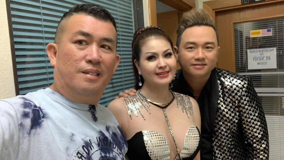 Cô chụp ảnh cùng Nhật Cường, Hàn Thái Tú nhân dịp các nam nghệ sĩ đi diễn tại Mỹ. (Ảnh: FBNV)