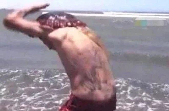 Và chàng trai ngoại quốc đen đủi dưới đây đã không may đụng phải một sinh vật đáng sợ như vậy trong lần dạo chơi bên bờ biển của mình.