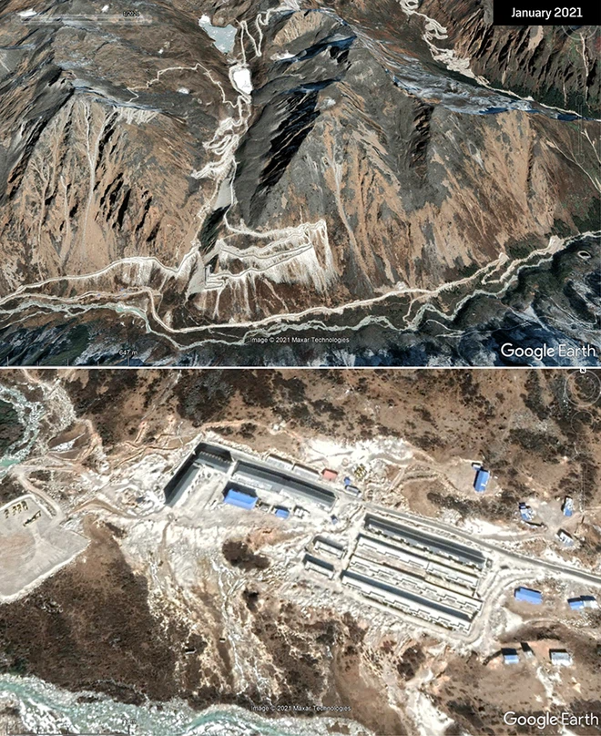 Ảnh vệ tinh cho thấy việc xây dựng của Trung Quốc ở làng Gyalaphug.