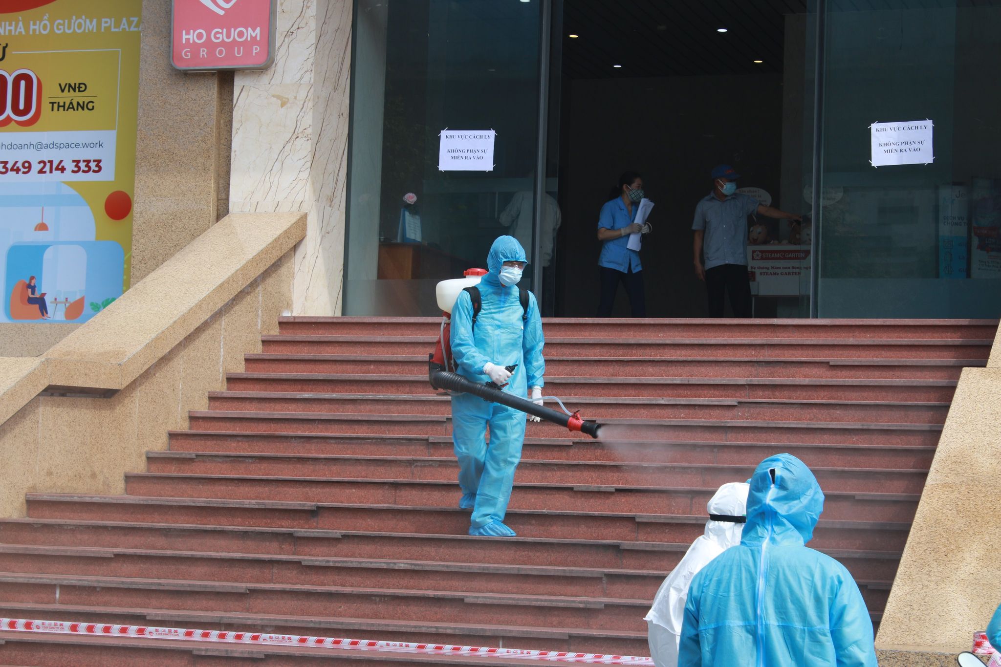 Cơ quan chức năng đã phong toả toàn bộ toà nhà Hồ Gươm Plaza (quận Hà Đông) sau khi có ca dương tính SARS-CoV-2 liên quan đến cặp vợ chồng nhiễm Covid-19 từng đi du lịch Đà Nẵng.