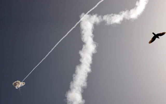 Tên lửa của hệ thống Iron Dome (Vòm Sắt) đánh chặn một rocket trên bầu trời thành phố Ashdod, miền nam Israel hôm 12/5 (Nguồn: AFP).