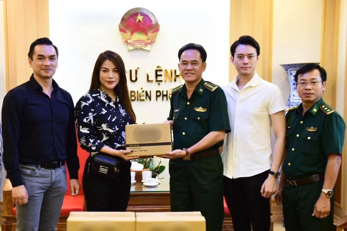 Trương Ngọc Ánh cũng có nhiều hoạt động đóng góp cho xã hội. Trong năm 2020, khi Covid-19 bùng phát, cô cùng Anh Dũng (áo trắng) đến trao tặng nhiều vật phẩm cần thiết cho lực lượng bộ đội biên phòng.