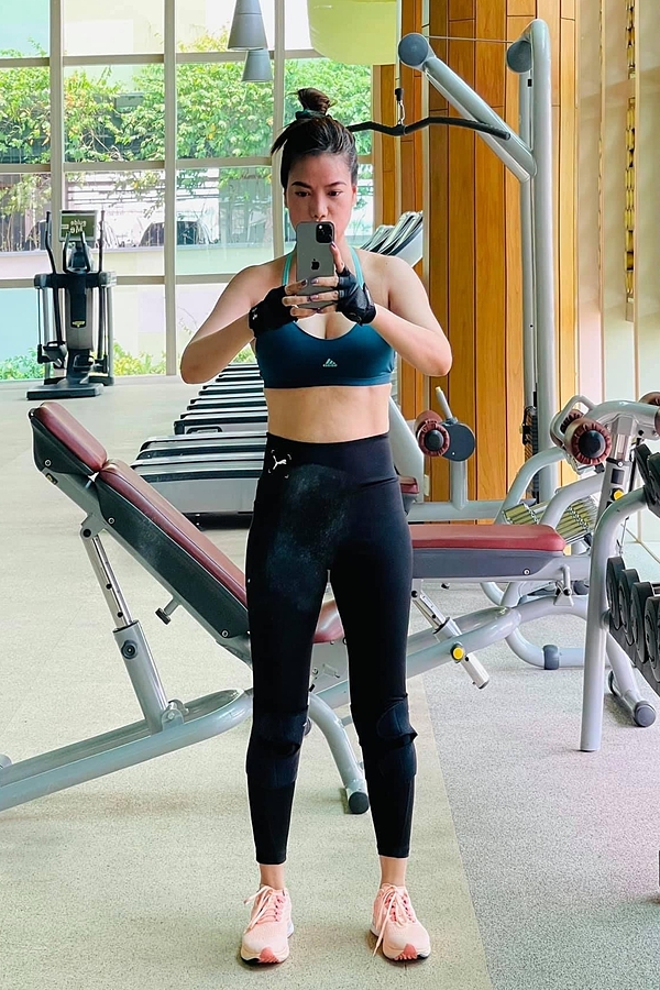Ở tuổi 45, 'bà mẹ một con' chăm chỉ tập gym, giữ gìn vóc dáng. Cô ưu tiên các bài tập cardio, đốt mỡ hiệu quả.