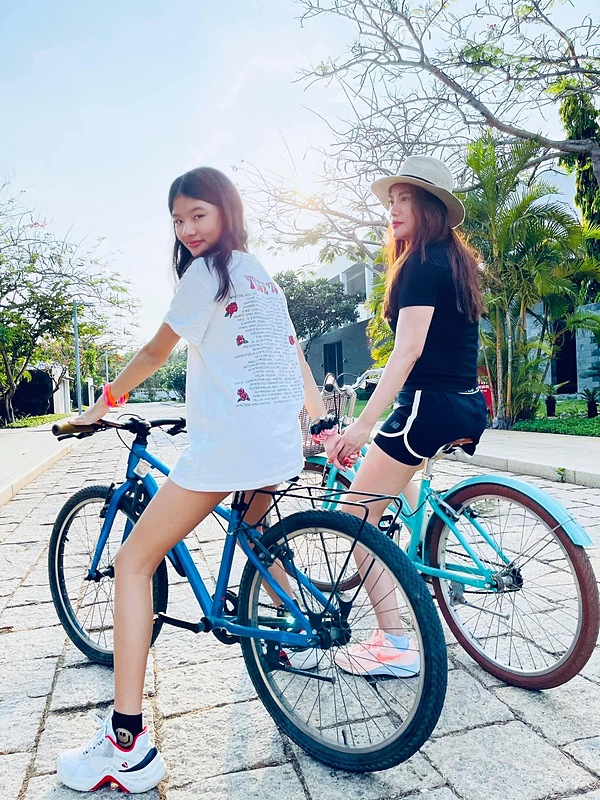 Có thời gian rảnh rỗi là Hoa hậu Thời trang Quốc tế 1998 đưa con gái đi chơi. Ở tuổi 13, Bảo Tiên ra dáng mỹ nhân, thừa hưởng nét đẹp và đôi chân dài từ mẹ.