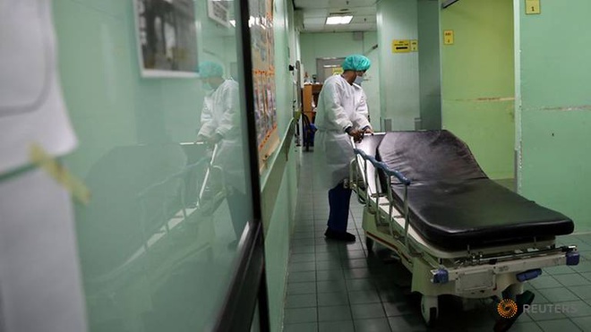 Nhân viên y tế mặc đồ bảo hộ đẩy giường cấp cứu trong bệnh viện ở Kuala Lumpur, Malaysia. Ảnh: Reuters.