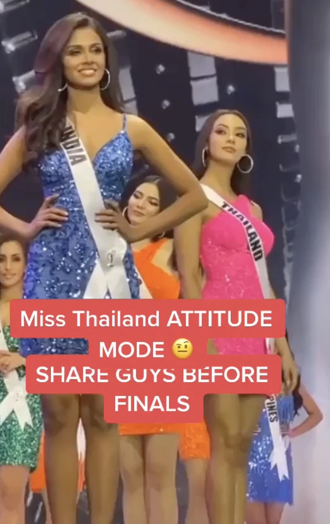 Tất nhiên, một cuộc thi lớn như Miss Universe hoàn toàn không thể thiếu những "drama" bên lề, đặc biệt là khi có nhiều gái xinh tụ hội thế này kiểu gì lại chẳng có chuyện này chuyện kia xảy ra. Mới đây, các fan sắc đẹp đã truyền tay nhau đoạn clip ghi lại thí sinh Thái Lan - Amanda Obdam có ánh mắt có phần "kỳ lạ" với đại diện của Ấn Độ.
