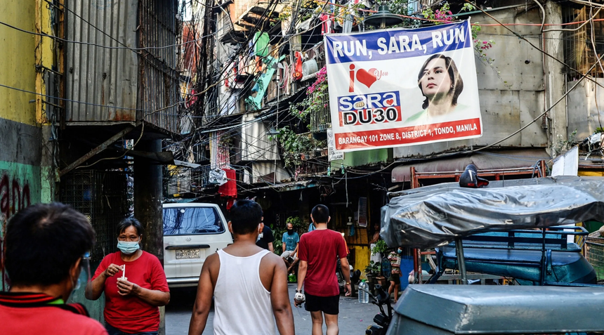 Lúc này, khắp Philippines đang là những tấm phông bạt và băng rôn ghi khẩu hiệu “Hãy tranh cử đi, Sara” và in ảnh bà Sara Duterte Carpio, con gái Tổng thống đương nhiệm Duterte. Đây là một phần trong chiến dịch nhằm thuyết phục bà Sara ra tranh cử để kế nhiệm cha mình.