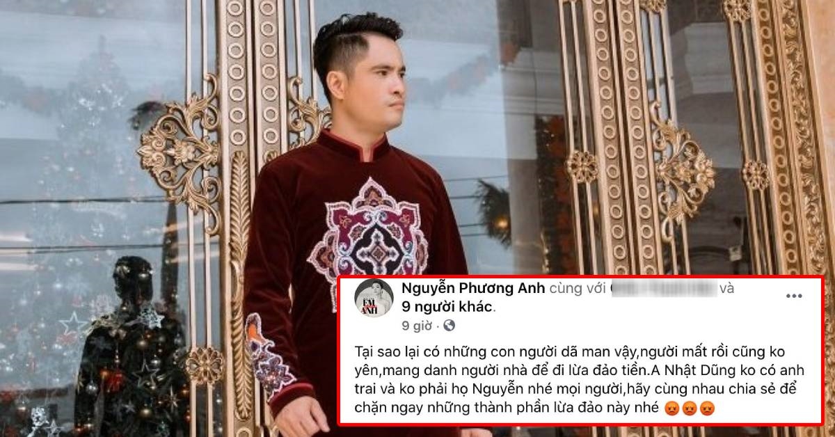 Mới đây, khi thông tin nhà thiết kế (NTK) Nhật Dũng qua đời vì bạo bệnh ở tuổi 41, trên mạng xã hội đã xuất hiện một trang giả mạo để lừa tiền phúng điếu. Cụ thể, kẻ xấu đã lập trang Facebook mang tên NTK Nhật Dũng đồng thời để lại số tài khoản ngân hàng để kêu gọi bạn bè, đồng nghiệp, người hâm mộ... gửi tiền phúng điếu. Tuy nhiên, ngay sau đó nhiều người đã phát hiện ra trang này đăng thông tin sai sự thật. Sai ngay từ họ của người quá cố và sai luôn cả người nhận tiền.