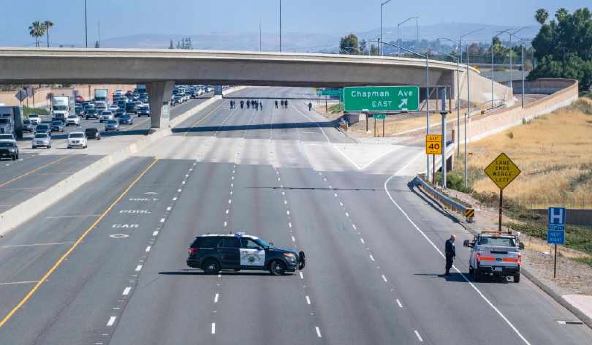 Cảnh sát phong tỏa tuyến đường xảy ra vụ xả súng tại Xa lộ 55. Ảnh: eastbaytimes.