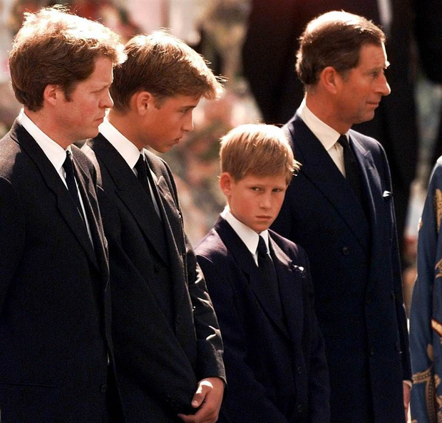 Khuôn mặt thất thần của Hoàng tử Harry (giữa) trong đám tang mẹ