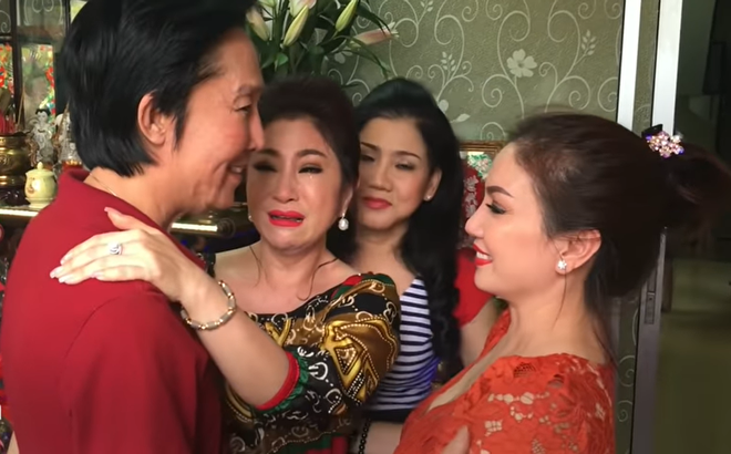 Nghệ sĩ cải lương Hồng Yến thấy vậy cũng chạy lại ôm nghệ sĩ Vũ Linh và nghệ sĩ Thoại Mỹ để tỏ lòng xúc động và biết ơn đàn anh đàn chị.