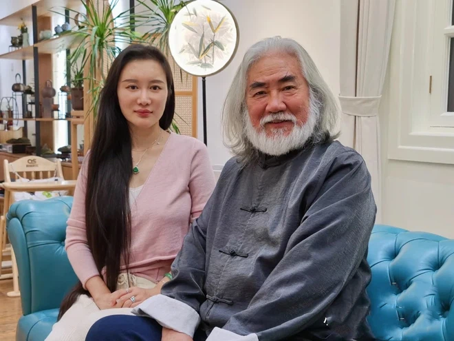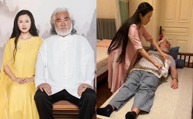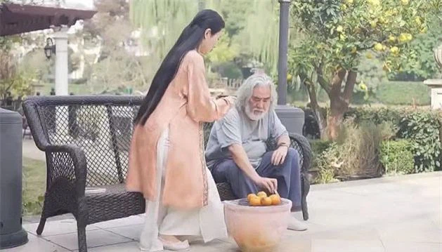 Không chỉ gọi chồng là "lăo gia", vợ Trương Kỷ Trung c̣n chăm sóc ông hết sức kính cẩn.