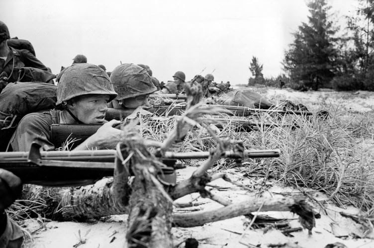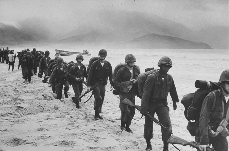 Từ bãi biển, lính Mỹ di chuyển về nơi tập kết. Ảnh: ABC News.