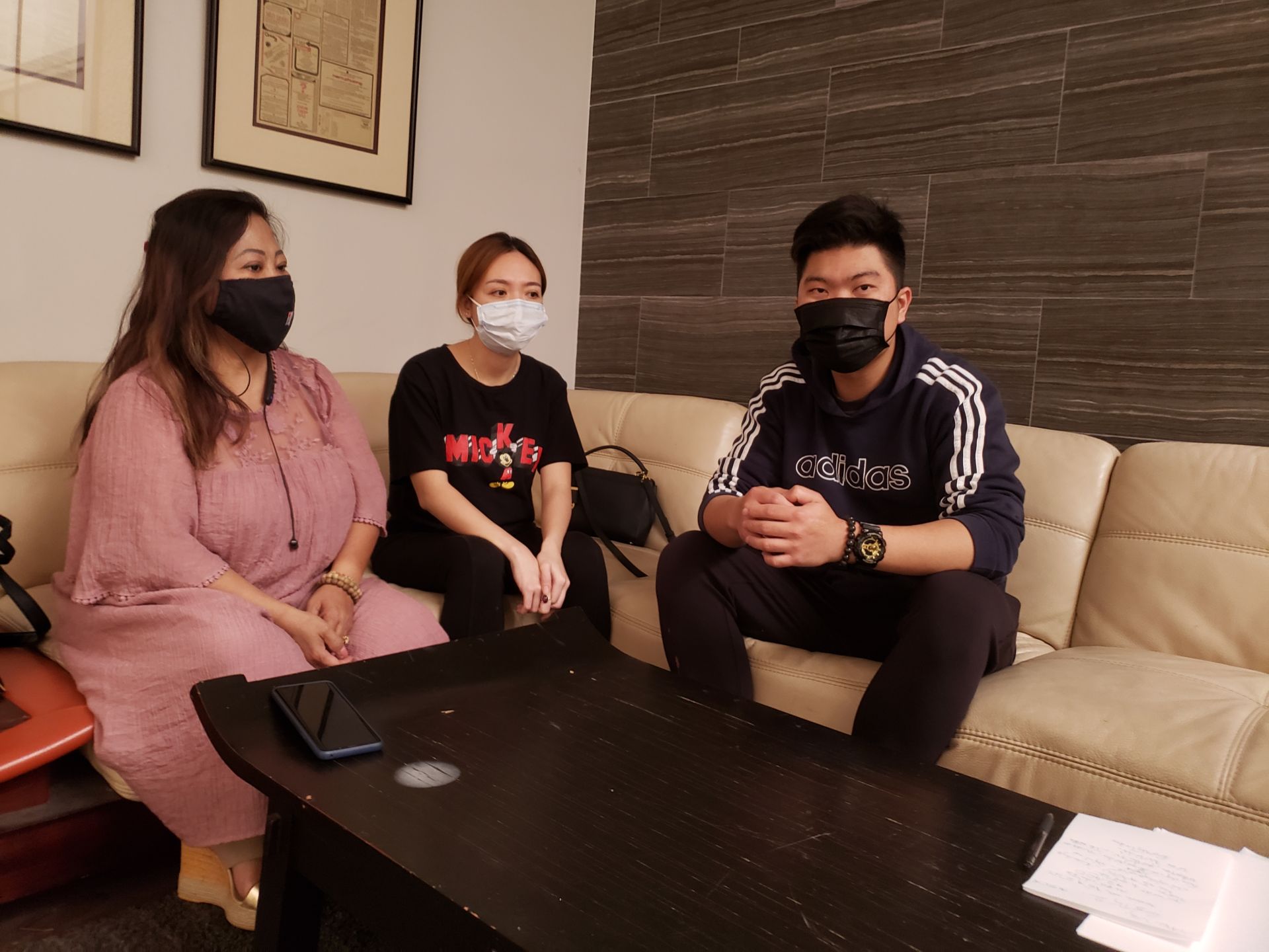 Từ trái, Nguyễn Hoàng Mai, Judy Kim, và Minh Vương, vài người chưa được bà Ly SengHong trả tiền. (Hình: Đằng-Giao)
