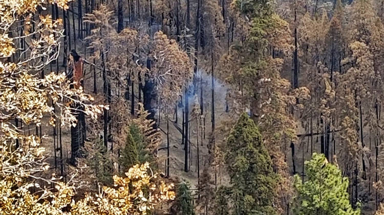 Khói từ cây Sequoia vẫn bốc lên âm ỉ. Ảnh: Cục Công viên Quốc gia Mỹ