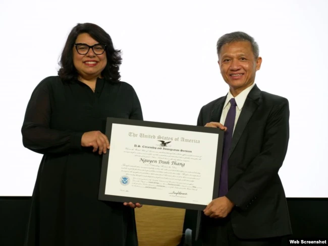 Hai người Mỹ gốc Việt tị nạn là bà Sandy Đặng và ông Nguyễn Đình Thắng có những đóng góp tích cực cho xã hội và đất nước Hoa Kỳ, khiến được Cơ quan Di trú và Nhập tịch Hoa Kỳ (USCIS) vinh danh hai công dân Mỹ từng là người tị nạn Việt Nam vào hôm 27/5 vừa qua.