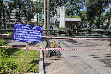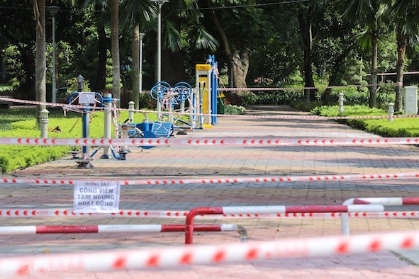 Công viên Gia Định giăng nhiều lớp ruy băng, các máy tập thể dục cũng quấn dây chặt khi có chỉ thị ngưng hoạt động. Nhiều công viên khác trong thành phố như Tao Đàn, Lê Văn Tám, Hoàng Văn Thụ... cũng vắng cả ngày.