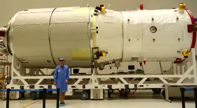 Tàu chở hàng Thiên Chu 2 được cấu tạo bởi hai phần, một khoang chở hàng (trái) với đường kính 3,35 mét và một khoang đẩy (phải) có đường kính 2,8 mét. Ảnh: CMG
