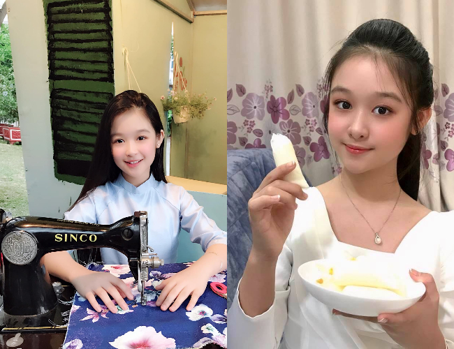 Không những vậy, Bảo Ngọc còn được mẹ dạy cho các kỹ năng sống như nấu ăn, may vá, … và từng tự tay thiết kế, cắt may cho mình hai bộ váy công chúa xinh xắn.