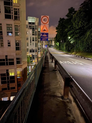 Đường phố bên ngoài khu KTX Đại học Quốc gia Singapore vắng lặng do dịch Covid-19. Ảnh: NVCC.