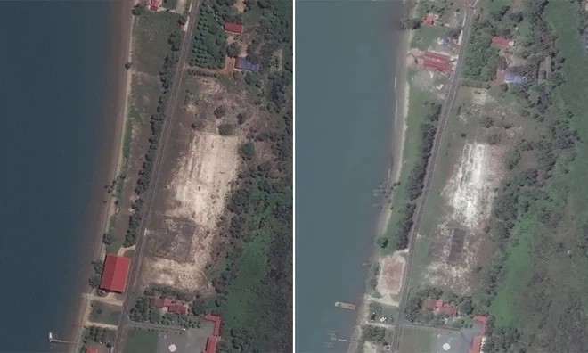 Khu vực tòa nhà do Mỹ tài trợ (trái) hồi tháng 7/2020 và cơ sở mới được xây dựng (phải) ngày 21/5. Ảnh: CSIS