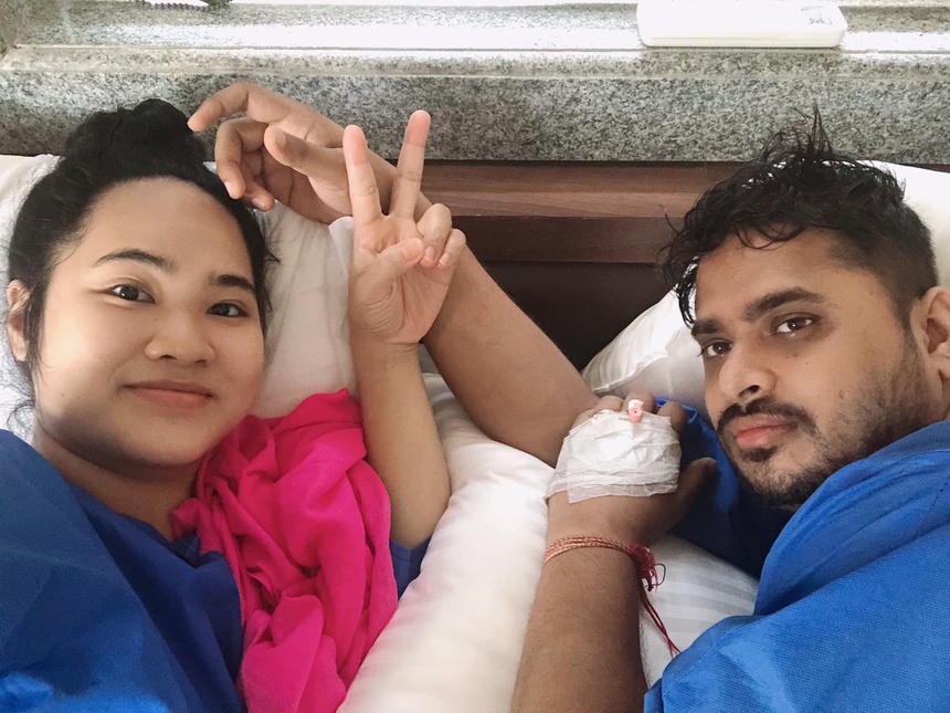 Lúc ở viện, hai vợ chồng chị được xét nghiệm Covid-19. Chị Hương nhận kết quả âm tính, còn anh Suraj thì dương tính, không ngoài dự đoán.