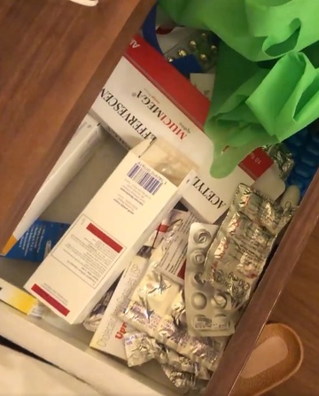 Mẹ chồng chị Hương, chị chồng, em chồng và con chị chỉ ở nhà tự uống thuốc. Theo chị Hương, đơn thuốc chủ yếu có thuốc hạ sốt, vitamin C liều cao, vitamin và khoáng chất tổng hợp, xông họng và súc miệng thường xuyên. Con trai chị thì được cho uống thuốc hạ sốt và dung dịch bù mất nước.