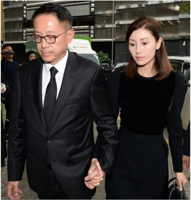 Vợ chồng Lý Gia Hân và Hứa Tấn Hanh trong đám tang ông Hứa Thế Huân.