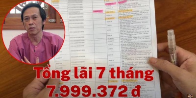 Dựa trên tờ sao kê phía Hoài Linh đưa ra, tổng tiền nhận được là hơn 13,2 tỷ đồng. Phần nội dung "bút toán trả lãi" gửi về tài khoản mỗi tháng hơn 1 triệu đồng. Sau khi đối chiếu 7 tháng, nam danh hài đã tổng kết lại số lãi 7,99 triệu đồng.