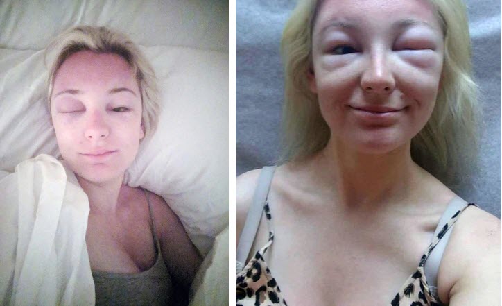 Lauren Stacey một phụ nữ 26 tuổi đến từ Swansea, South Wales vốn có ngoại hình rất ưa nhìn đã mạnh dạn chia sẻ những bức hình không mấy xinh đẹp của mình lên mạng xã hội. Trong hình có thể thấy, khuôn mặt xinh đẹp của cô đột nhiên bị sưng húp lên, đặc biệt ở phần mắt, toàn bộ da mặt bị đỏ ửng, bỏng rát.