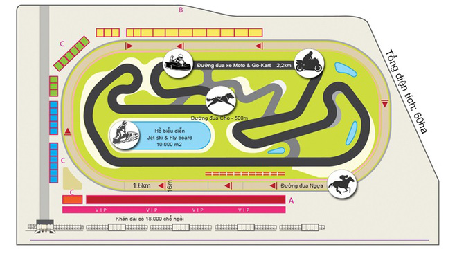 Theo đó, 5 đường chạy và sân đua khác nhau được xây dựng tại trường đua Đại Nam để phù hợp với từng bộ môn.