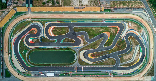 Đường đua xe mô tô và go-kart chiều dài 2.2km, 15 cua trái - phải khác nhau trên bề mặt nhựa polymer tiêu chuẩn quốc tế.