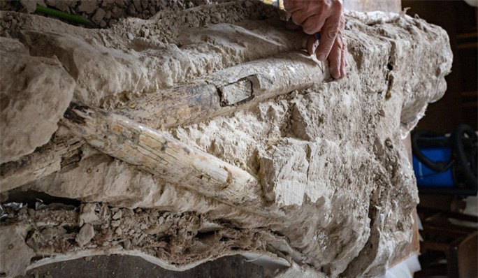 Cận cảnh hộp sọ khổng lồ của mastodon vừa được khai quật - Ảnh: Đại học Bang California ở Chico