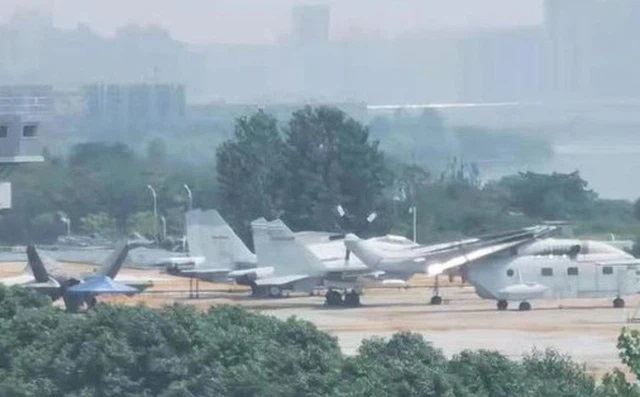 Gợi ý mới nhất về việc PLAN cũng có thể triển khai các máy bay chiến đấu tàng hình lên Type 003 xuất hiện dưới dạng một bức ảnh mờ mờ mà ai đó đã chụp được tại một cơ sở thử nghiệm của hải quân Trung Quốc ở Vũ Hán.