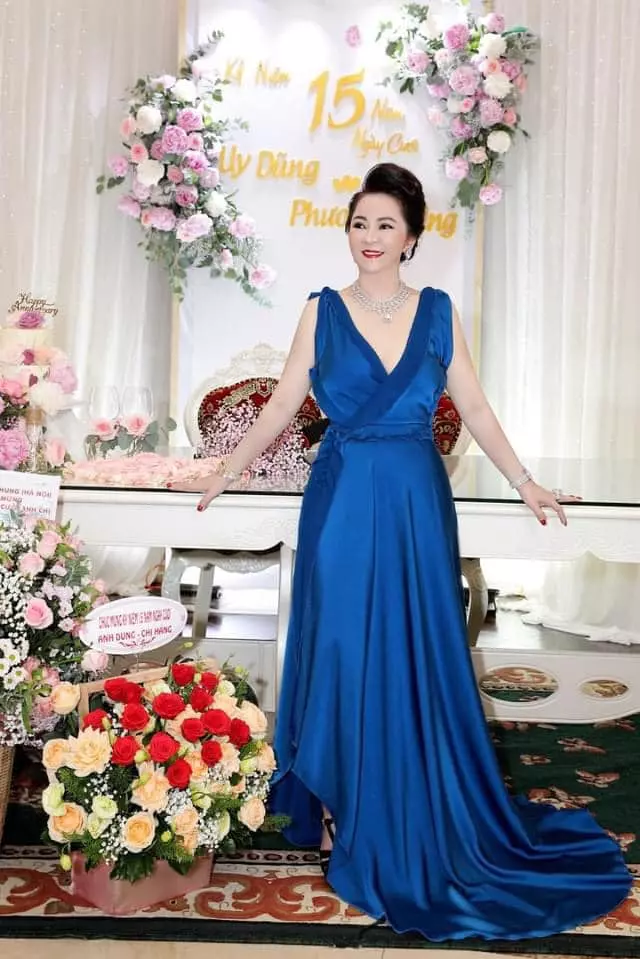 Nữ đại gia trong bộ váy màu xanh thướt tha.