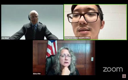 Ryan Lê Nguyễn xuất hiện cùng luật sư Joe Simon của anh trong buổi ra tòa với bà Thẩm Phán Elisha Fink hôm thứ Hai, 7 tháng 6, 2021. (MLive.com)